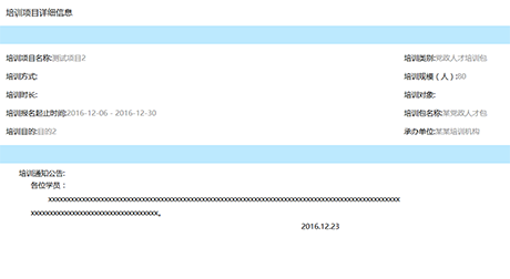 系统提供培训项目申请、审核、培训发布、学员报名、培训二维码生成、教培信息上传等综合性的企业人才培训管理功能。学员可以通过系统查询报名情况;管理端可以全程监督培训开展的相关情况。