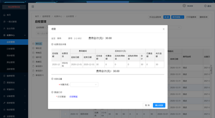 实现业主对相关的费用进行查询,可通过刷卡、扫码等进行缴费,提升缴费率。