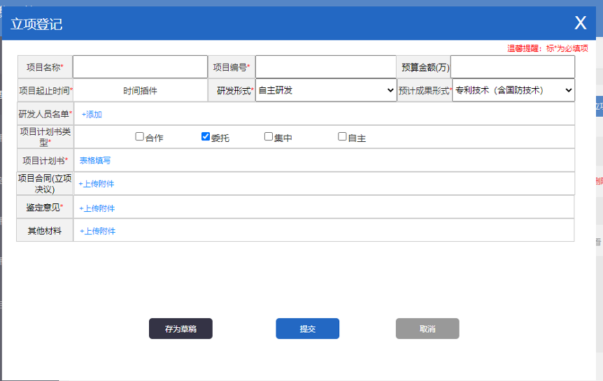 研发费用归集管理系统采取全流程线上化操作、实现立项前项目信息的基础数据填报,进行项目类型筛查、研发立项项目档案登记,以留存备查,实现安全、规范、准确地录入信息。